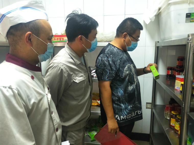 此次重点督查了食堂夏季食品安全防范措施是否到位,检查人员从食材加工间、储藏间、操作间、调料间再到食堂大厅逐项检查,确保炊具、灶具干净整洁,食品冷藏做到生熟分开,食堂煤气报警器工作正常。